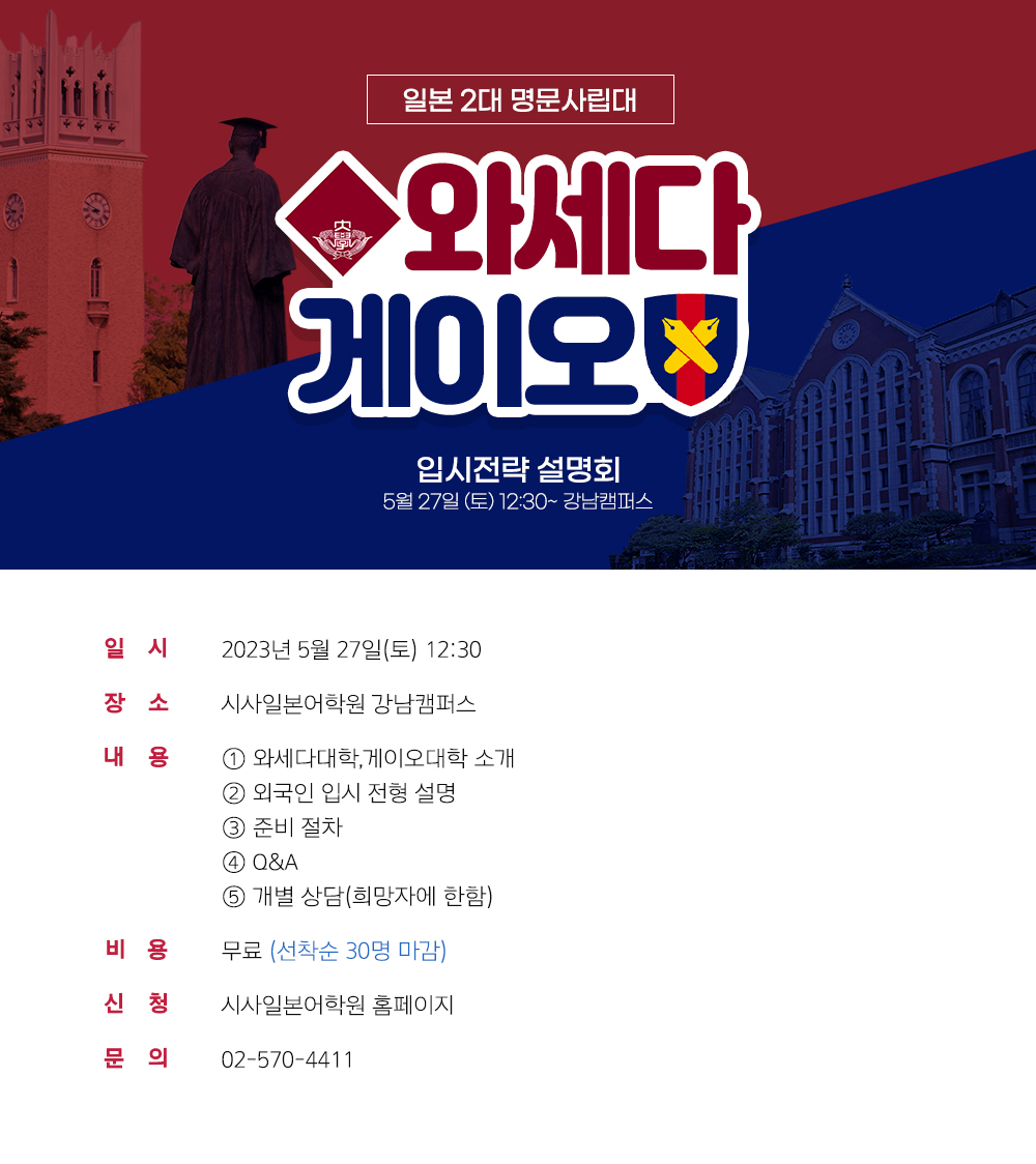 일본 2대 명문사립대 와세다?게이오 입시전략 설명회