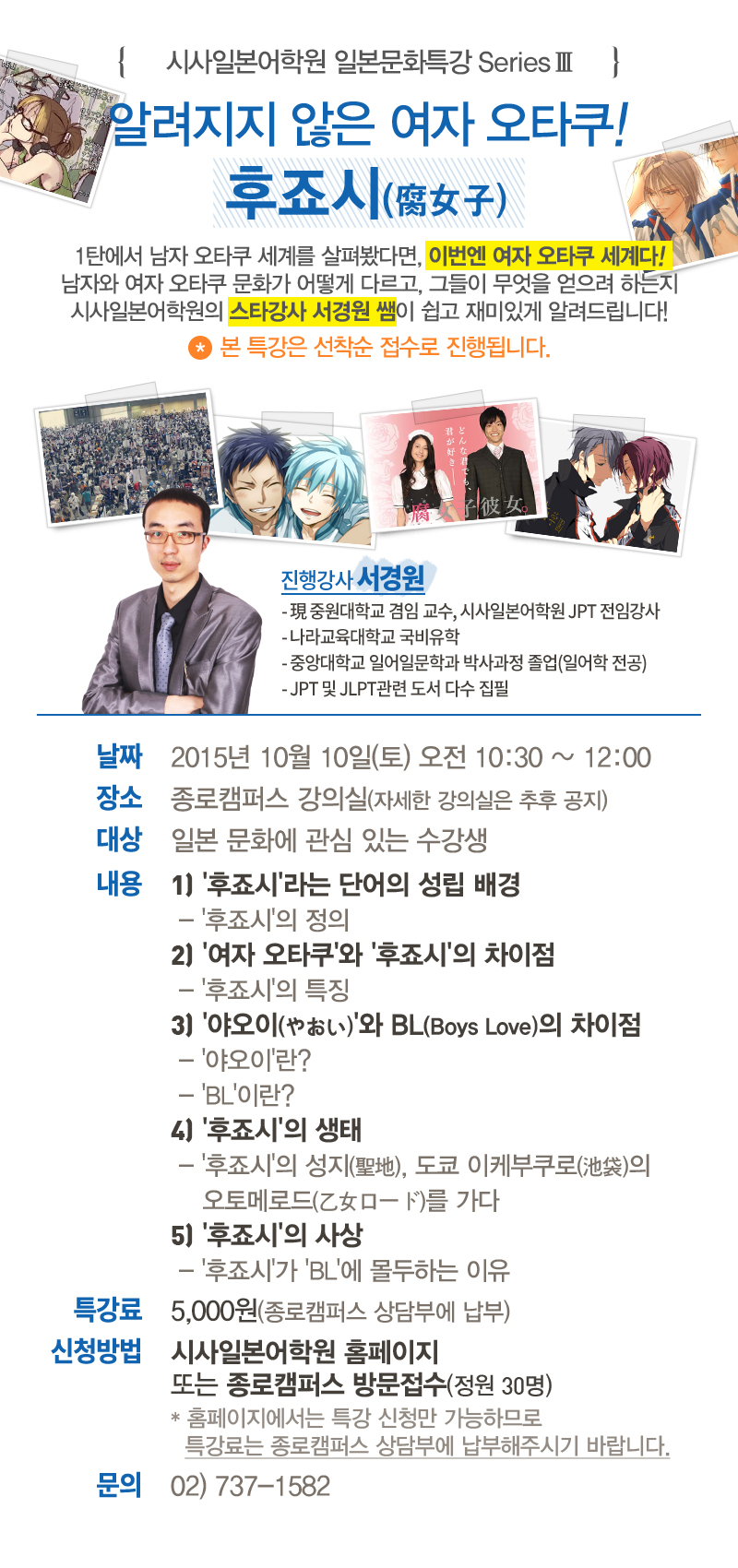 시사일본어학원 일본문화특강Ⅲ- 알려지지 않은 여자 오타쿠! 후죠시(腐女子)