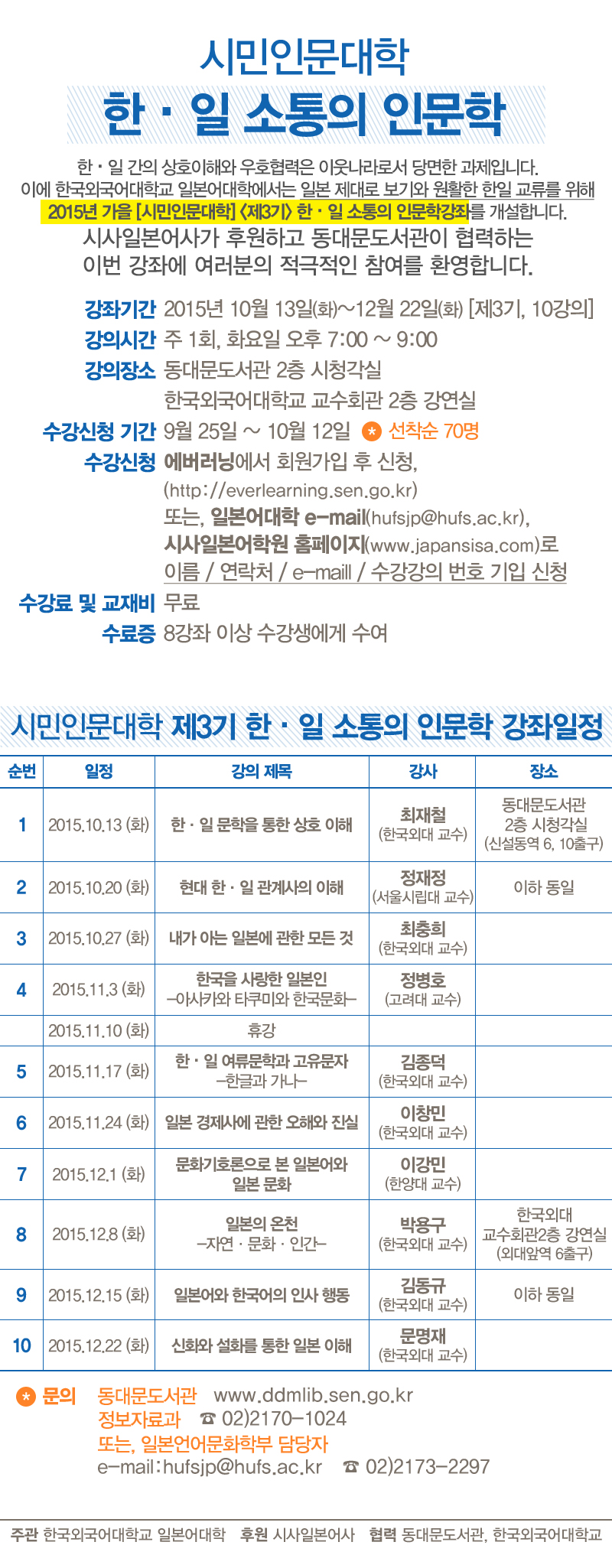 2015년 - 가을[시민인문대학] <제3기> 한·일 소통의 인문학 강좌 개강 안내