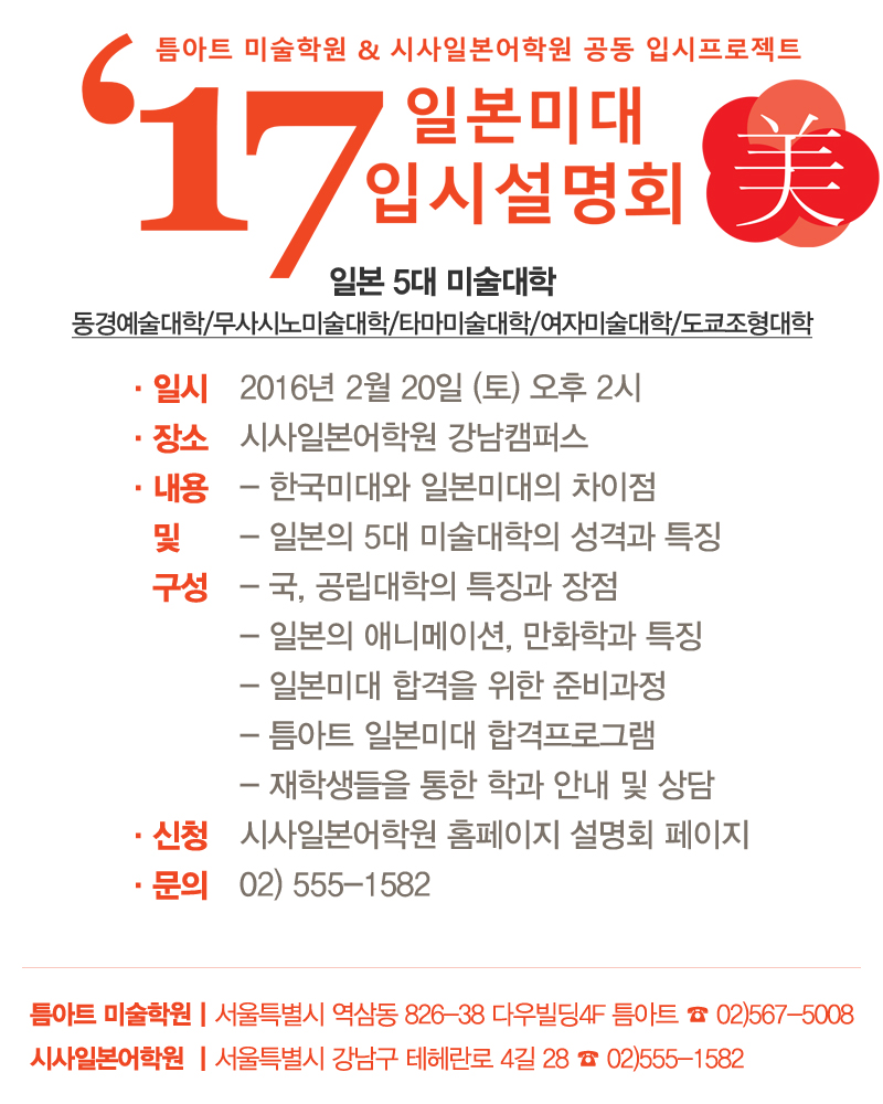 일본미대 합격률1위 틈아트미술학원과 함께하는 일본미대입시설명회