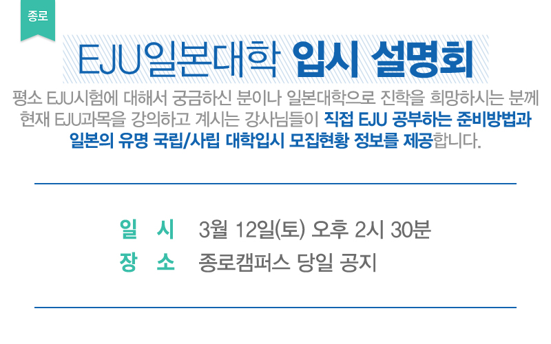 2016년 3월 EJU 일본대학 입시설명회 - 종로