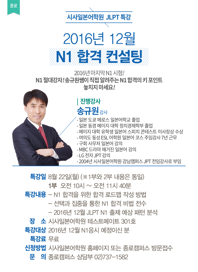 시사일본어학원 JLPT 특강 2016년 12월 N1 고득점 합격 설명회