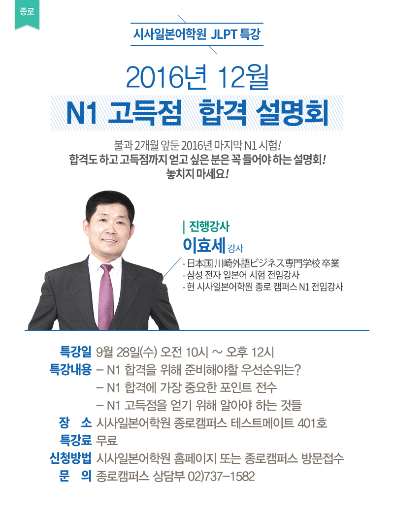 시사일본어학원 JLPT 특강 2016년 12월 N1 고득점 합격 설명회