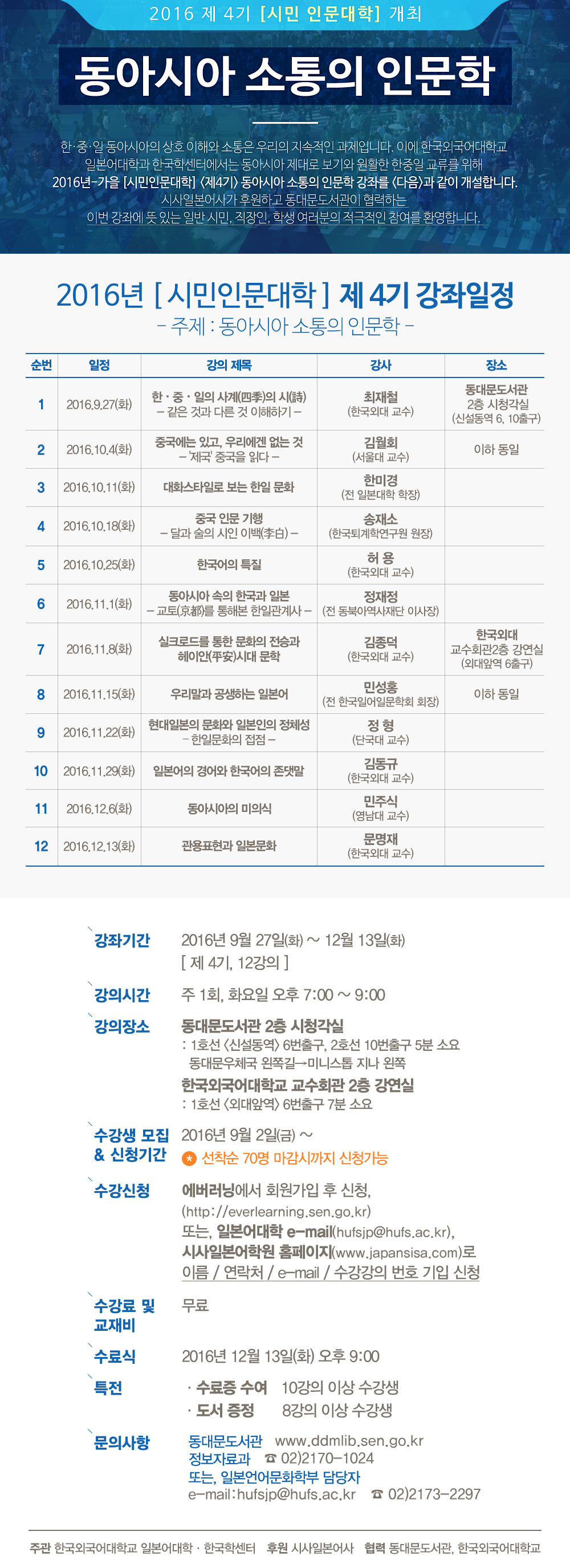 2016 제 4기 [시민인문대학] 개최 - 동아시아 소통의 인문학