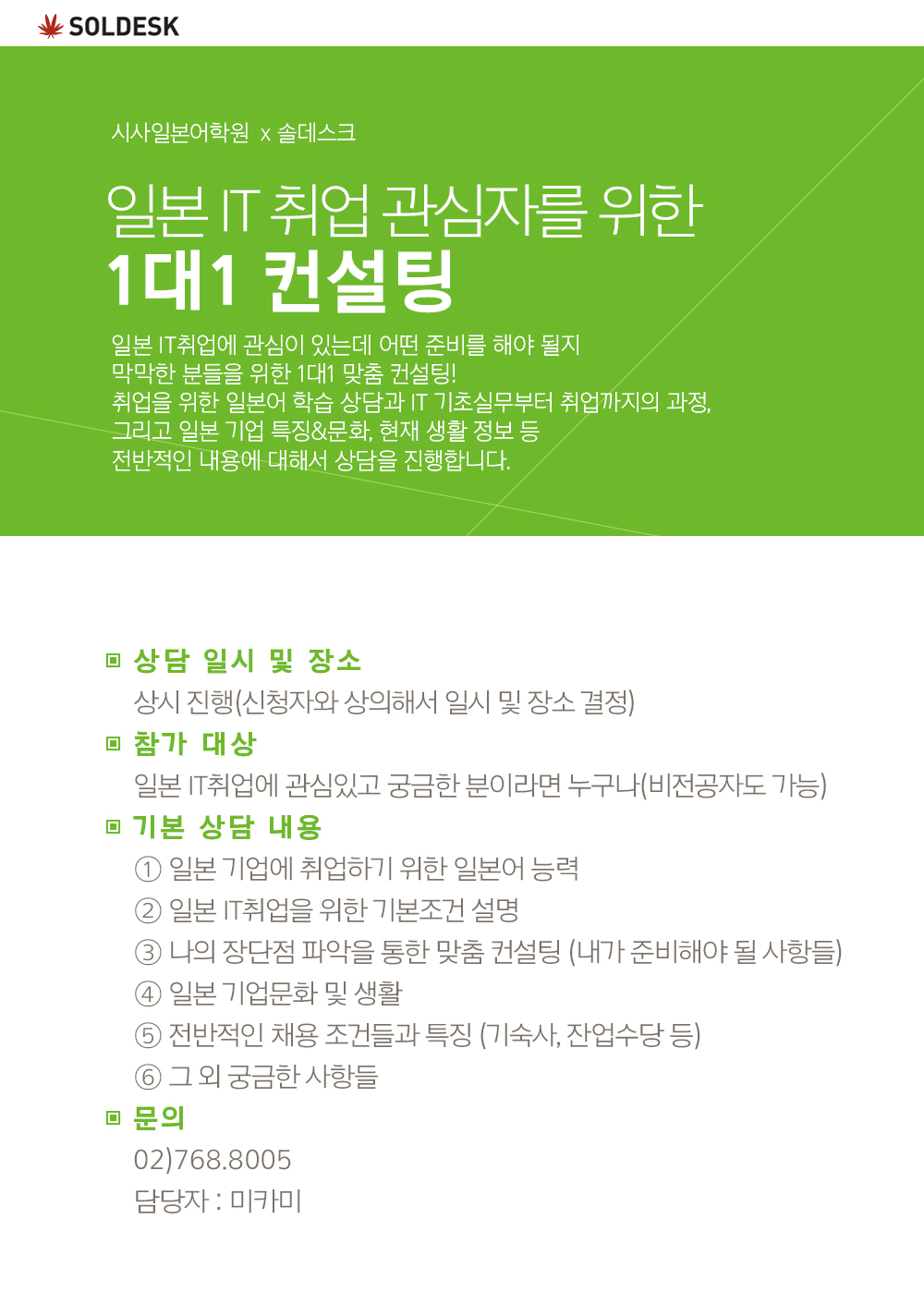 일본 IT 취업 관심자를 위한 1대1 컨설팅