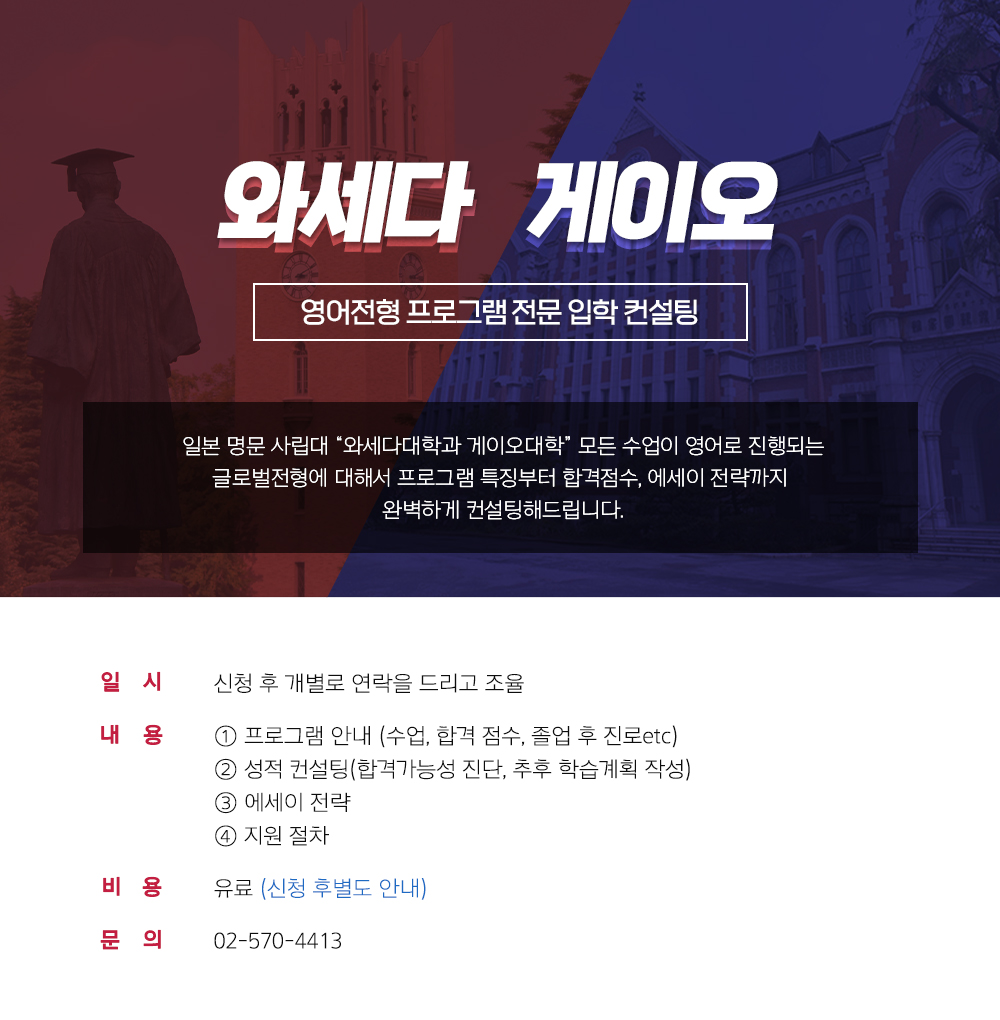 와세다, 게이오 영어전형 컨설팅