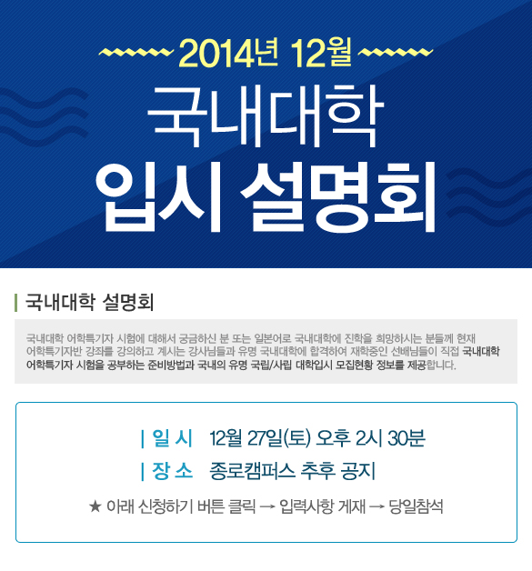 2014년 12월 국내대학 입시 설명회 - 종로