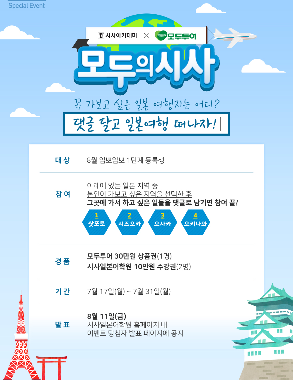 3일 전 도쿄 여행에서 돌아왔습니다. 대학 때부터 친한 형과 함께 갔는데 이 형은 강남 시사에서 2단계를 마친 상태였습니다. 언어는 직접 부딪혀봐야 한다며 도쿄 시민들과 점원들에게 길을 물어보거나 '음식이 정말 맛있다!' 정도의 이야기를 건넸는데 모두가 정말 친절하게 대답을 해주었고, 특히나 식당에서 '잘 먹겠습니다', '맛있습니다'고 말하면 점원들과 주변 손님들의 웃음이 터지고 오히려 우리가 신기한지 말을 걸어오는 걸 보며 정말 재미있었고 용기가 생겼습니다. '아 일본어를 조금이라도 더 배워서 왔더라면 얼마나 더 즐거울까'라는 생각이 여행 내내 들었습니다. 그게 계기가 되어 귀국 하자마자 시사일본어(강남) 매일반을 등록하게 되었습니다. 도쿄에서 얻어온 열정으로 입뽀입뽀 단계부터 열심히 배워 삿포로의 오도리 공원에서 열리는 맥주가든에서 현지 사람들과 즐겁게 이야기를 나누어보고 싶습니다.