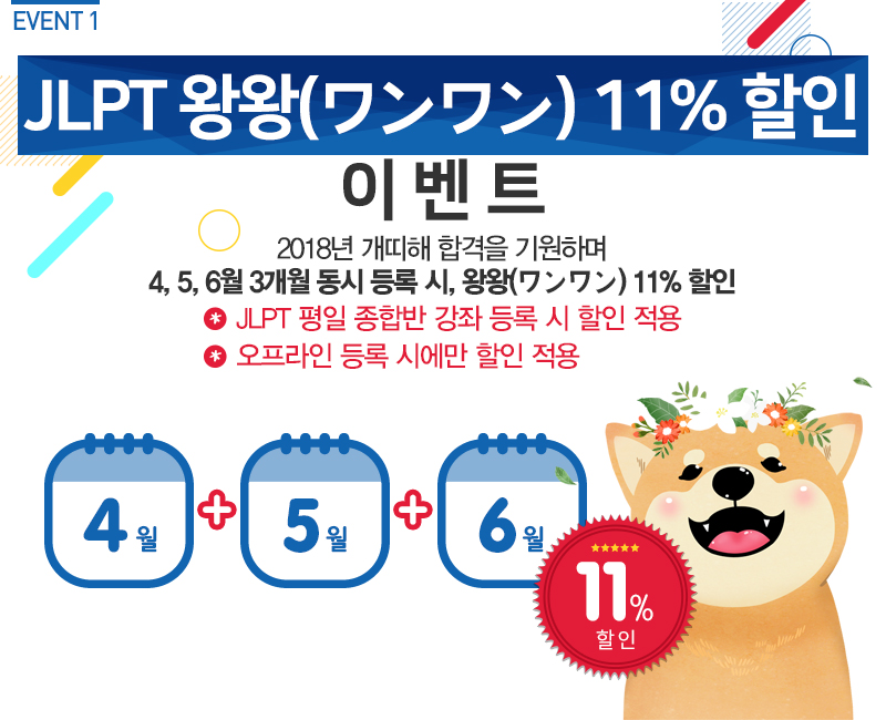 JLPT 왕왕(ワンワン) 11%할인 이벤트