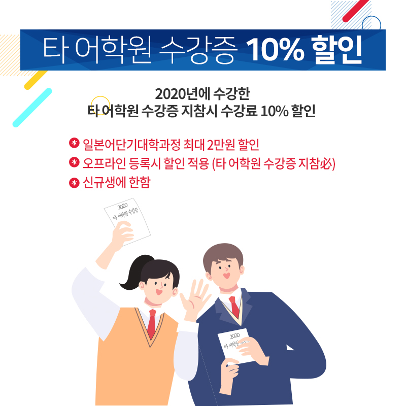 타 어학원 수강증 10%할인