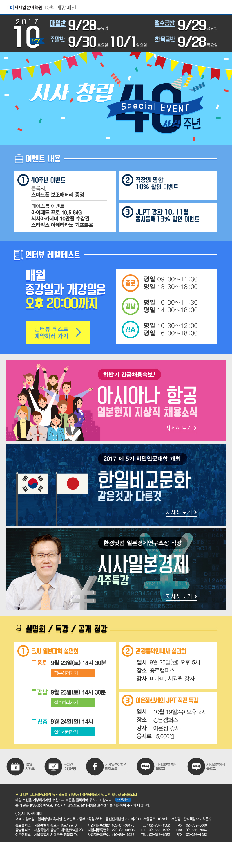 시사일본어학원 10월 개강메일