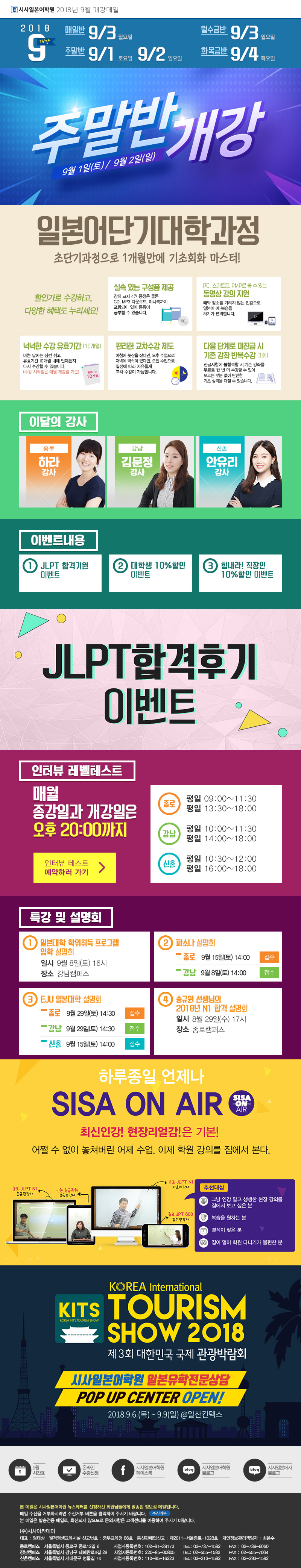 시사일본어학원 2018년 9월 개강메일