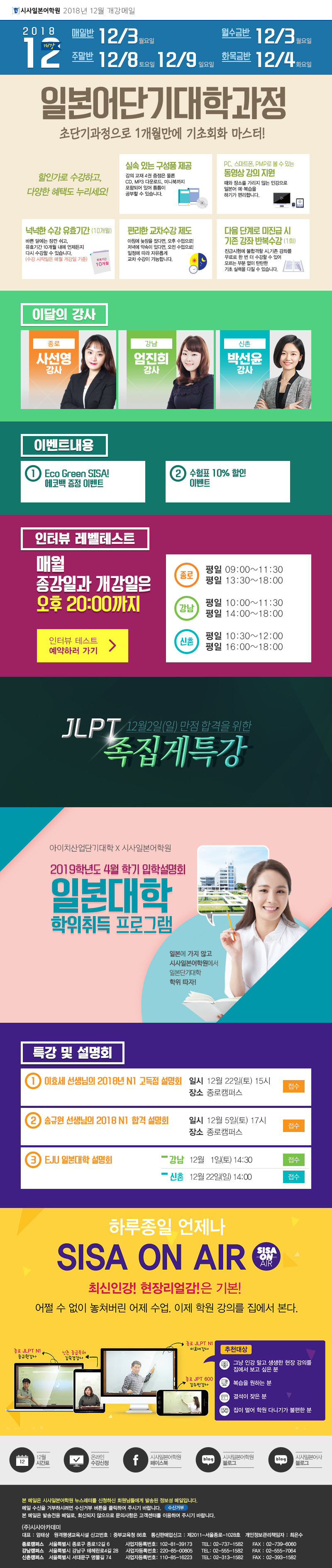 시사일본어학원 2018년 12월 개강메일