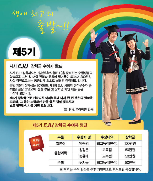 제5기 시사일본어학원 EJU 장학금 수혜자 안내