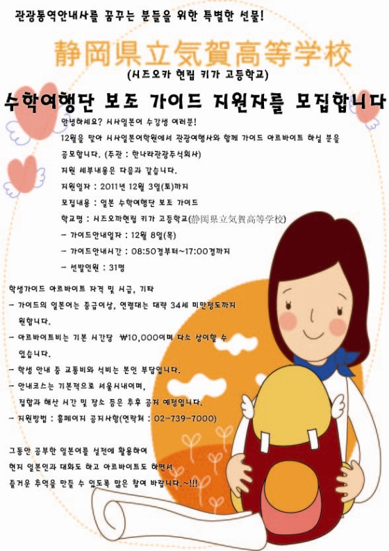 시즈오까현립 키가 고등학교 수학여행단 보조 가이드 아르바이트 대모집!!!