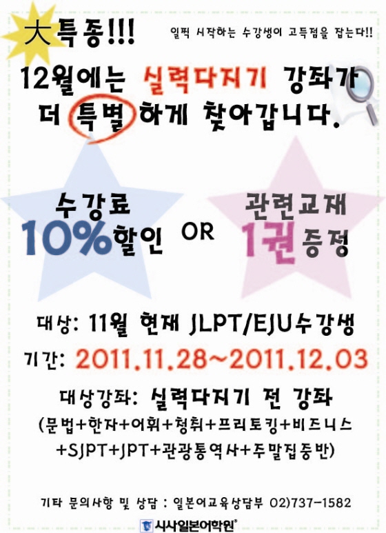 12월 JLPT/EJU 수강생을 위한 실력다지기 이벤트-12월3일까지 서두르세요~!!! / 종로캠퍼스