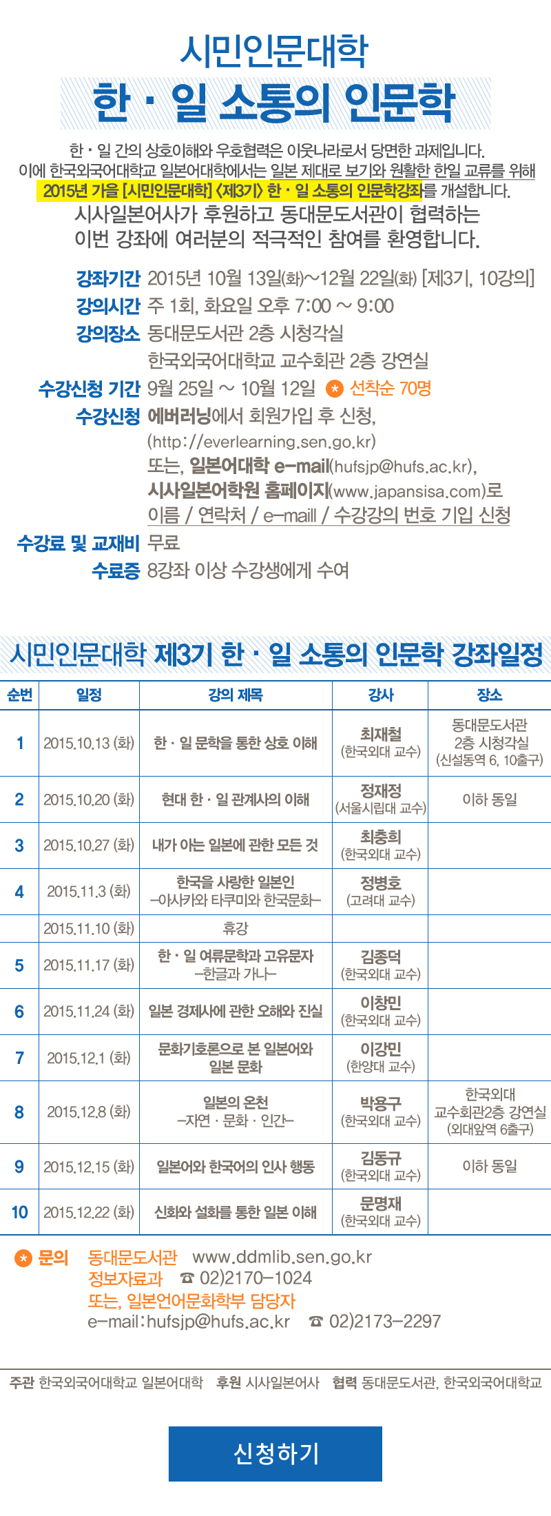 2015년 - 가을[시민인문대학] <제3기> 한·일 소통의 인문학 강좌 개강 안내