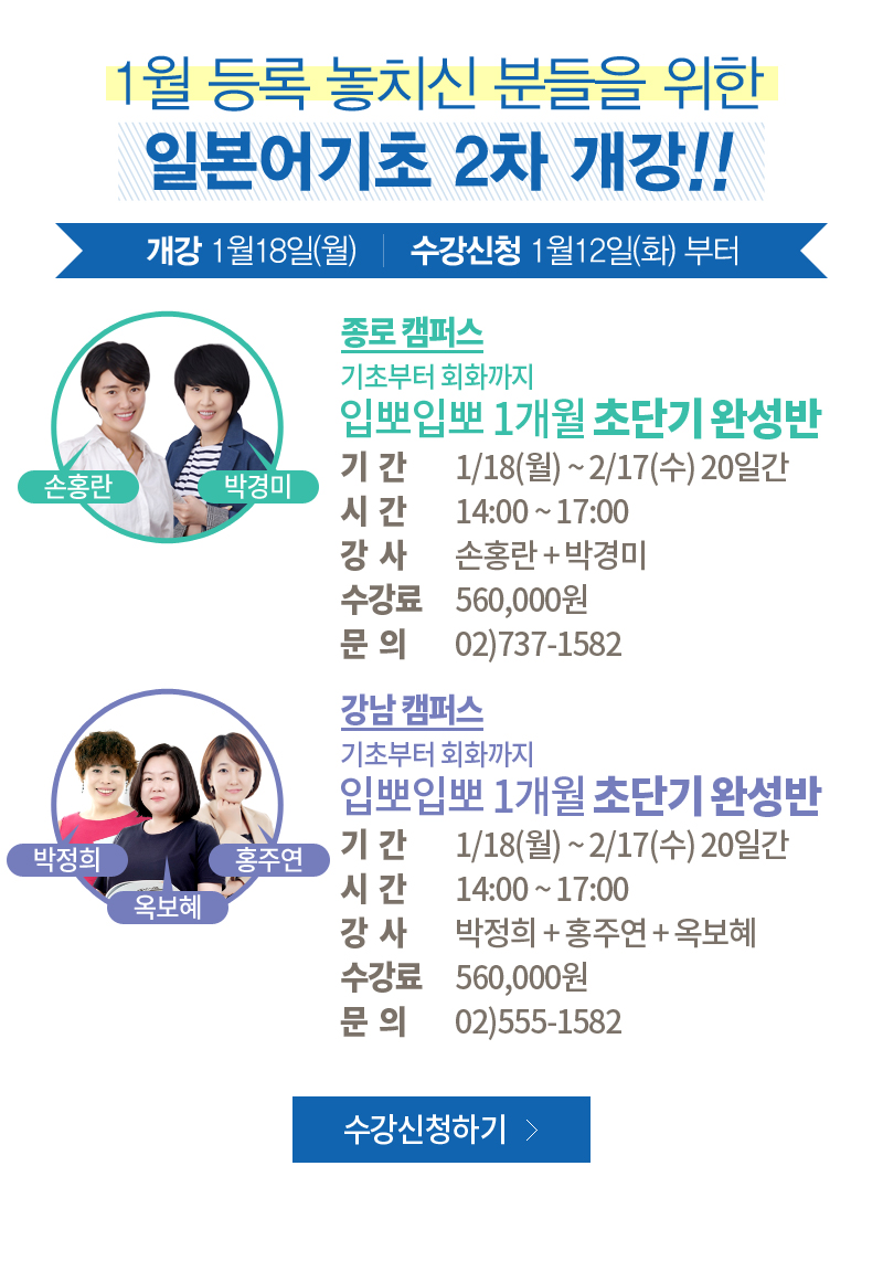1월 등록 놓치신 분들을 위한 일본어기초 2차 개강안내