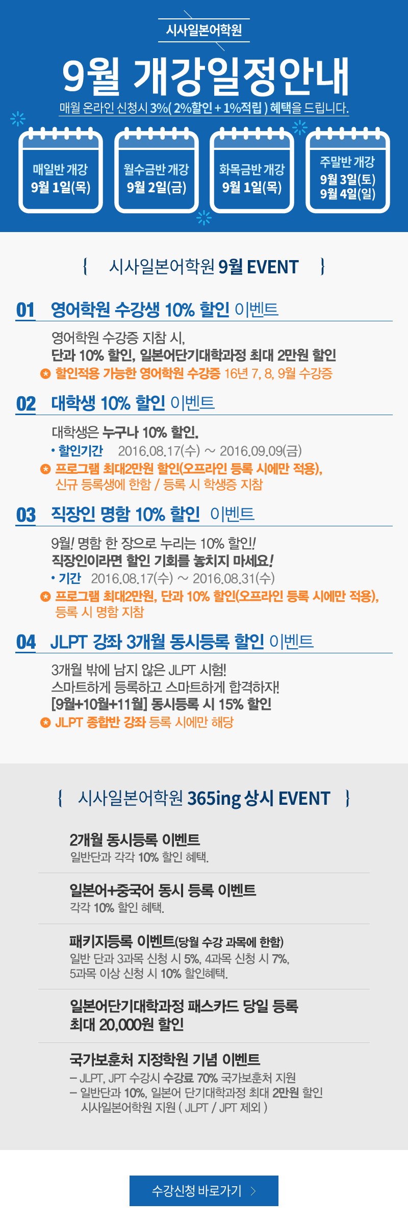 2016년 9월 개강일정 안내