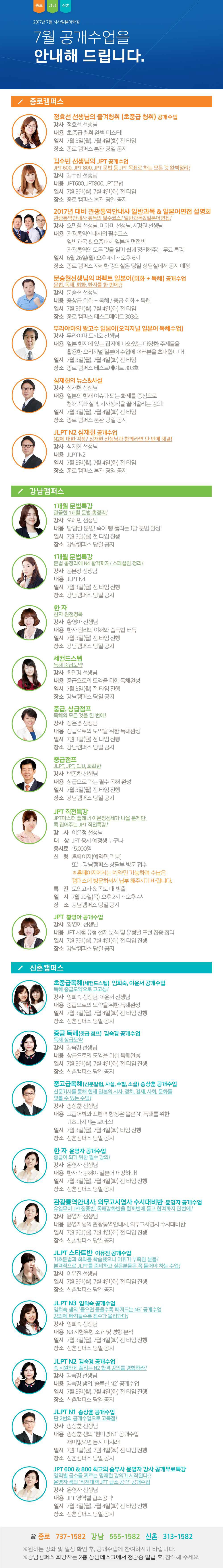 2017년 7월 개강일정 안내