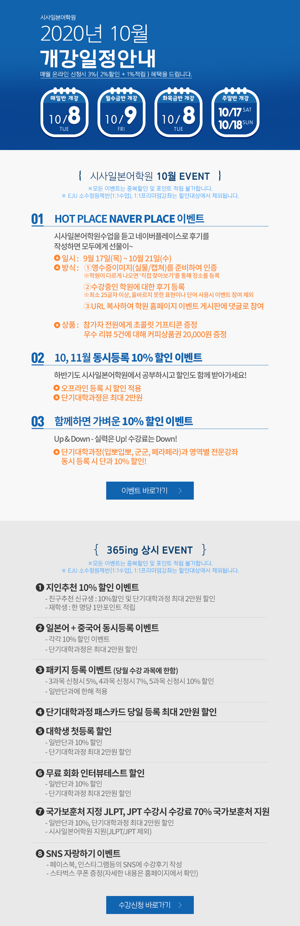 2020년 10월 개강일정 안내