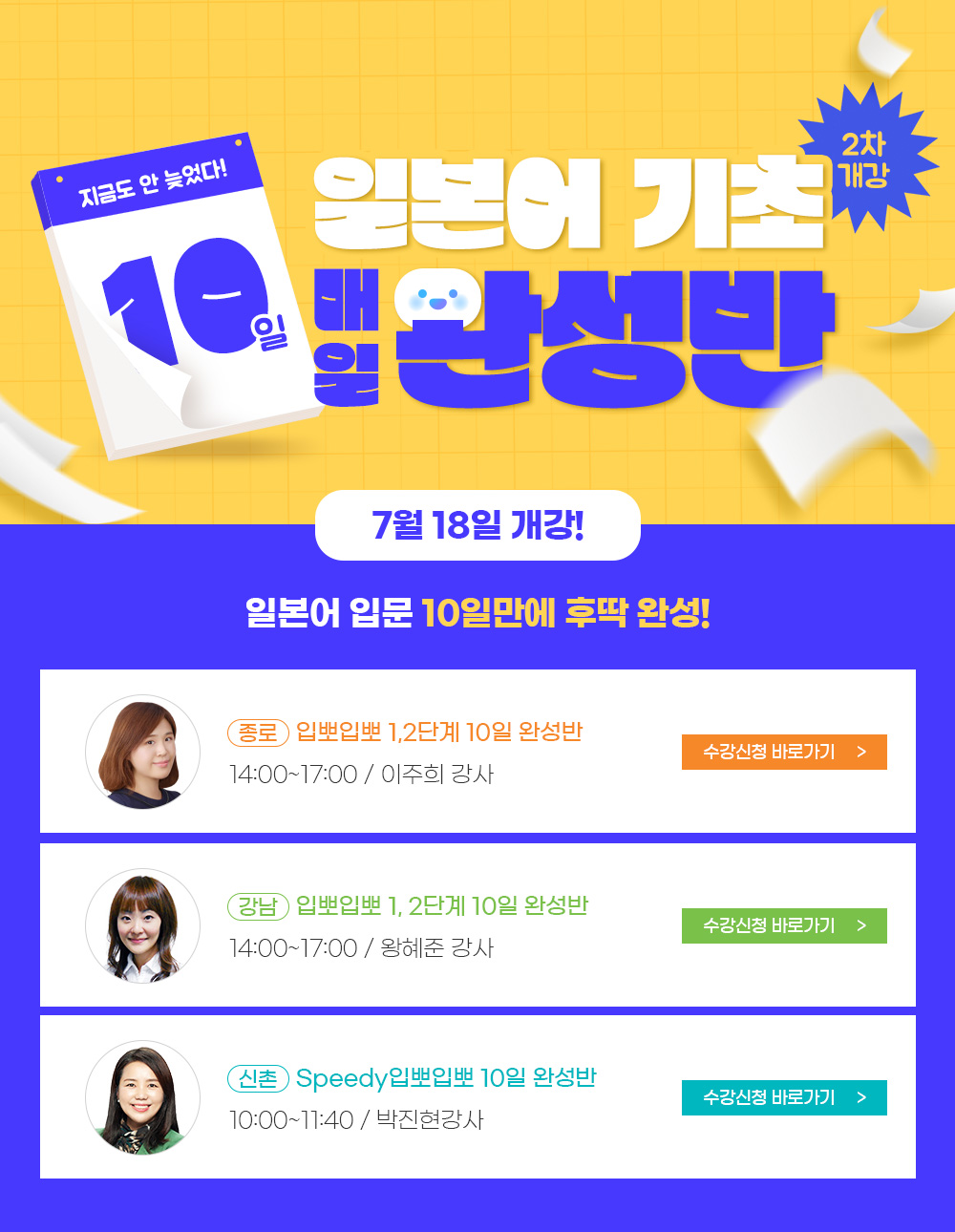 일본어 기초 10일 매일 완성반 2차개강!
