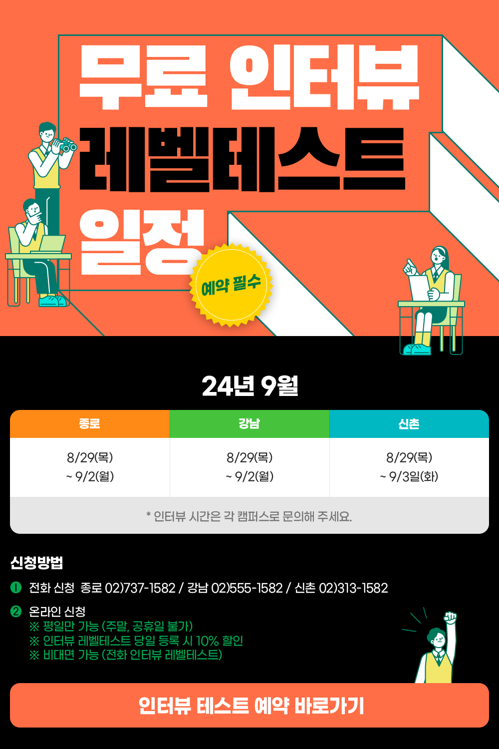 9월 대비 무료 인터뷰 레벨테스트 일정 안내