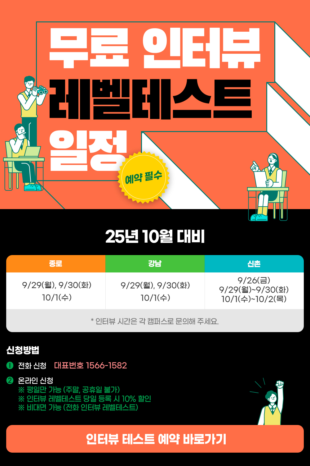 10월 대비 무료 인터뷰 레벨테스트 일정안내