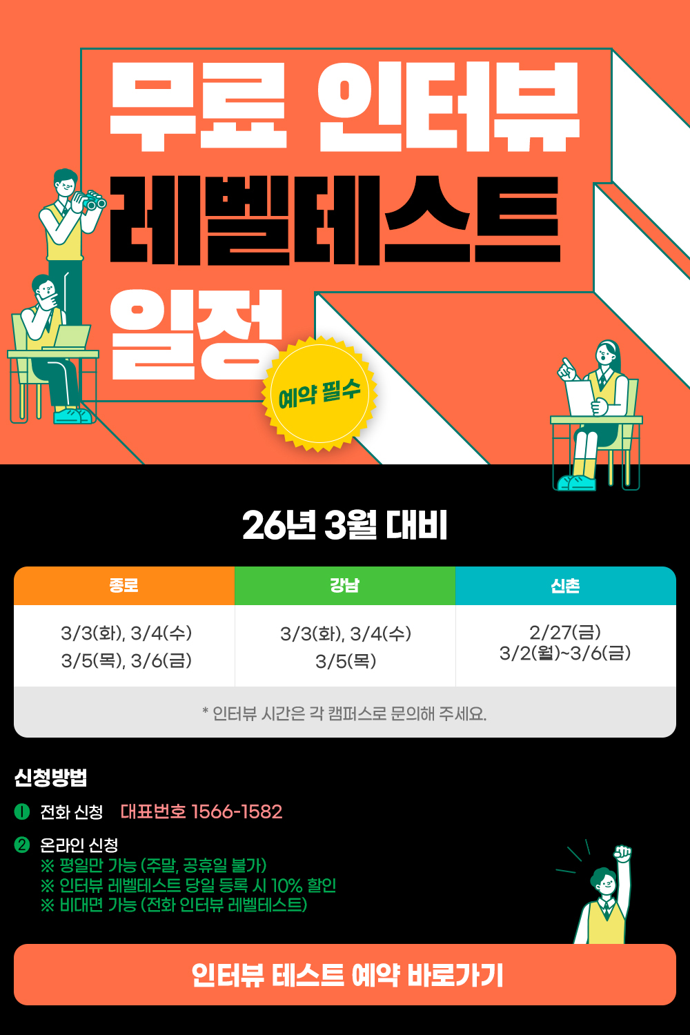 3월 대비 무료 인터뷰 레벨테스트 일정 안내