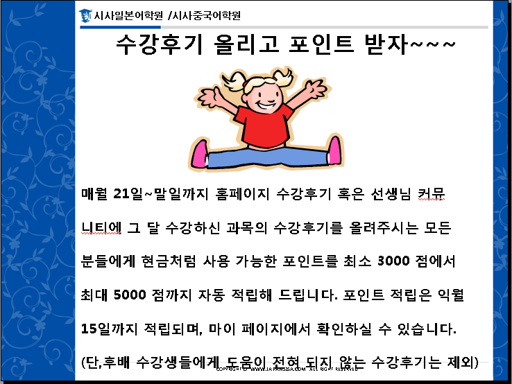 수강후기만 올려도 포인트가 팍팍 쌓인다~~~!!!