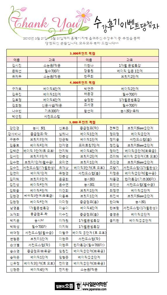 3월 수강후기 이벤트 당첨자 명단입니다!