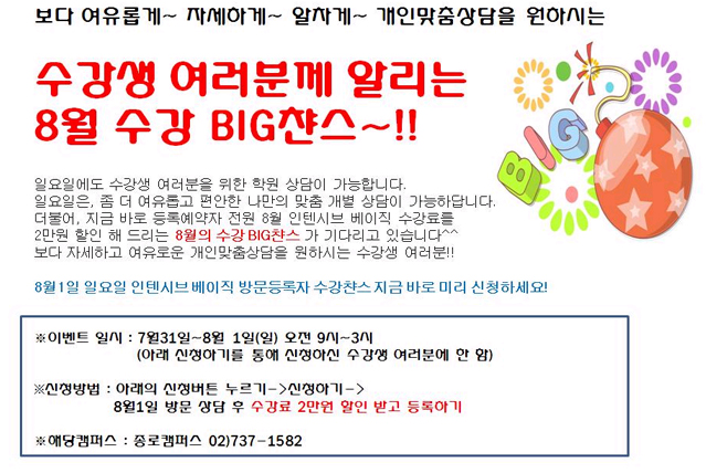 8월1일(일)상담신청 미리하고 수강할인 2만원받기