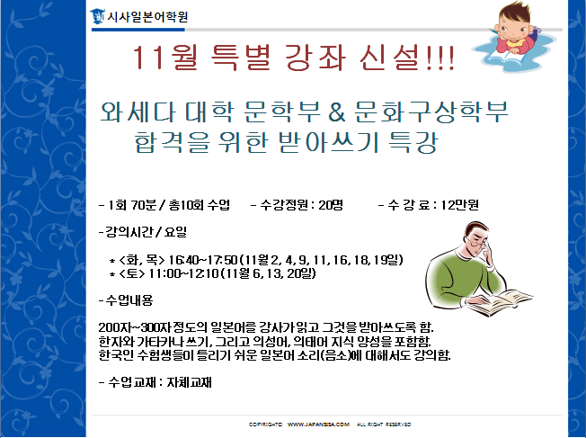 와세다 대학 문학부&문화구상학부 받아쓰기 특강!!!