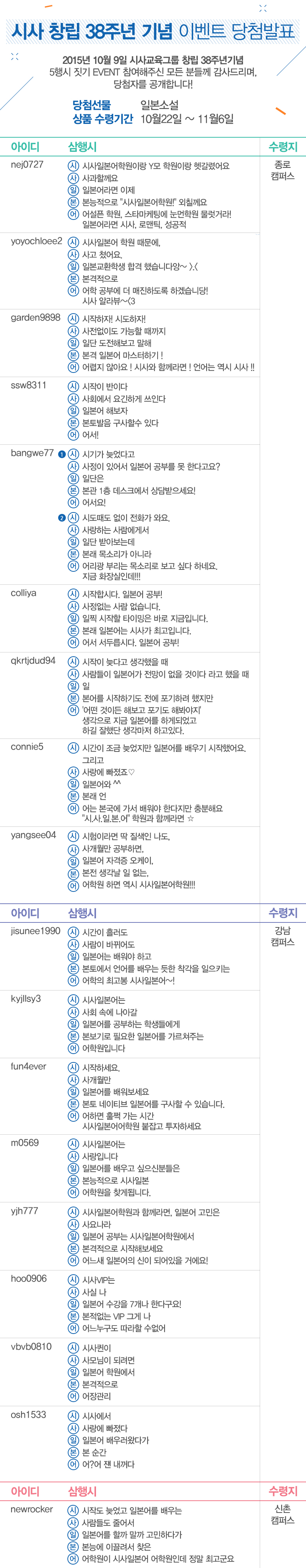 10월 시사 창립 38주년 기념 이벤트 당첨자 발표