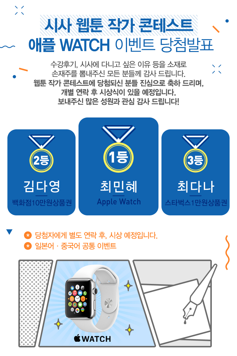 시사 웹툰 작가 콘테스트 애플 WATCH 이벤트 당첨자 발표