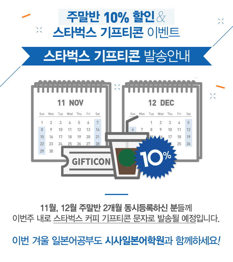 주말반 2개월 동시등록생 스타벅스 기프티콘 발송 안내