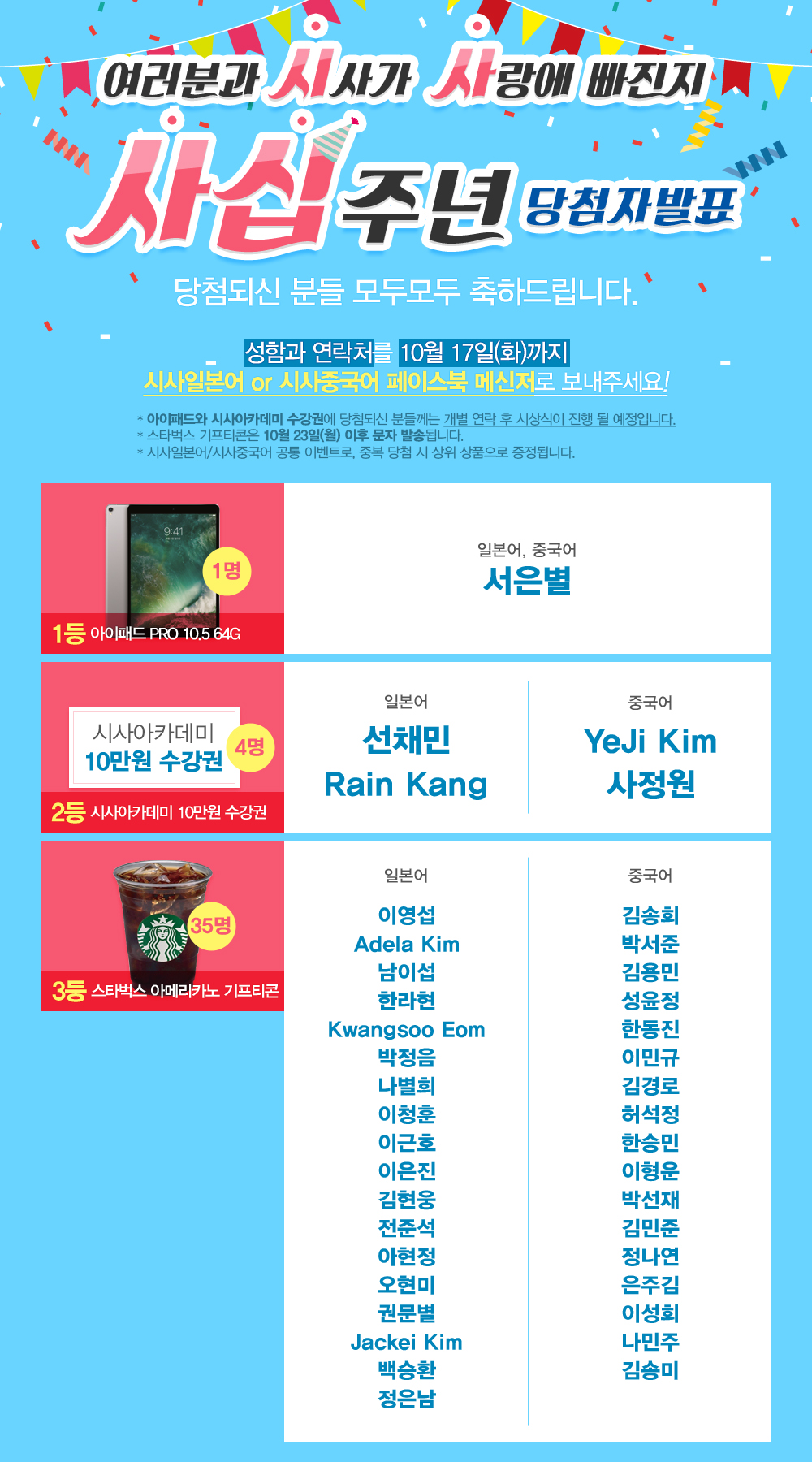 시사 창립 40주년 이벤트 당첨자 발표