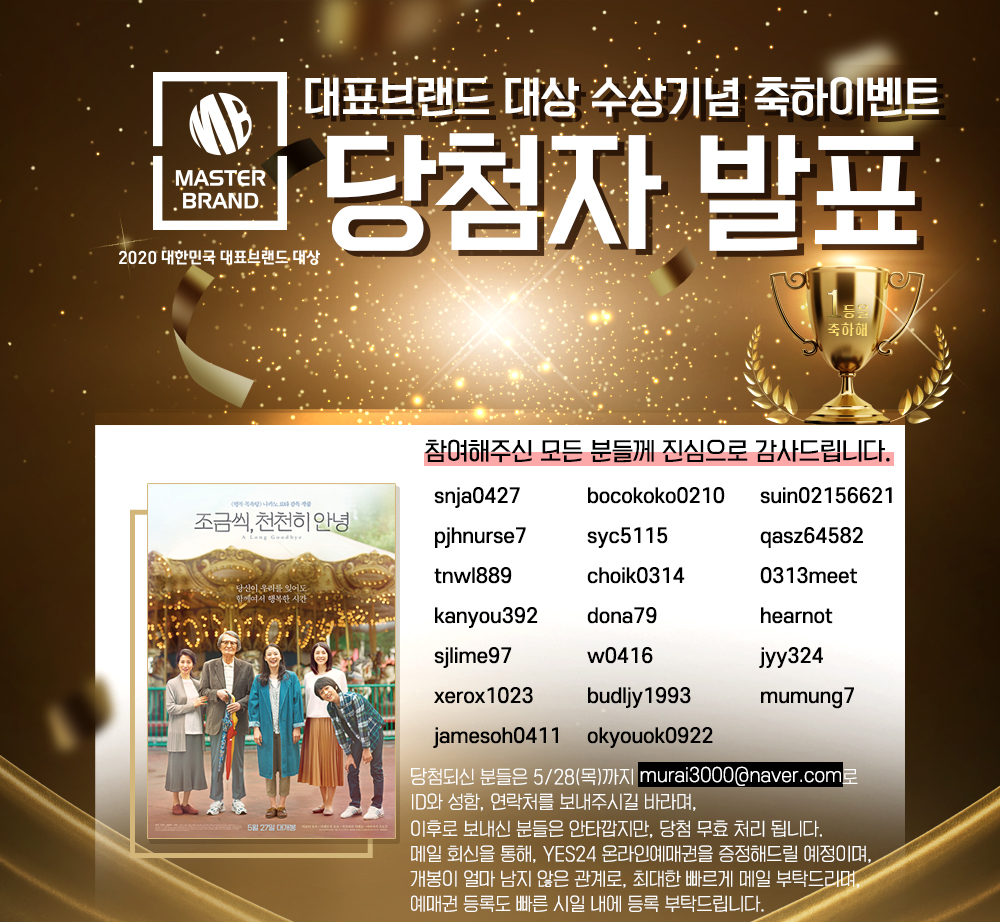 2020 대표브랜드 대상 수상기념 축하이벤트 당첨자발표!