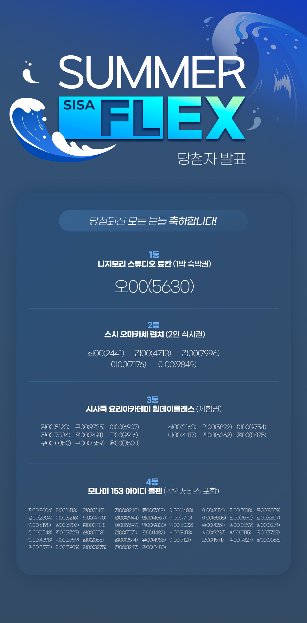 SISA SUMMER FLEX 이벤트 당첨자 발표