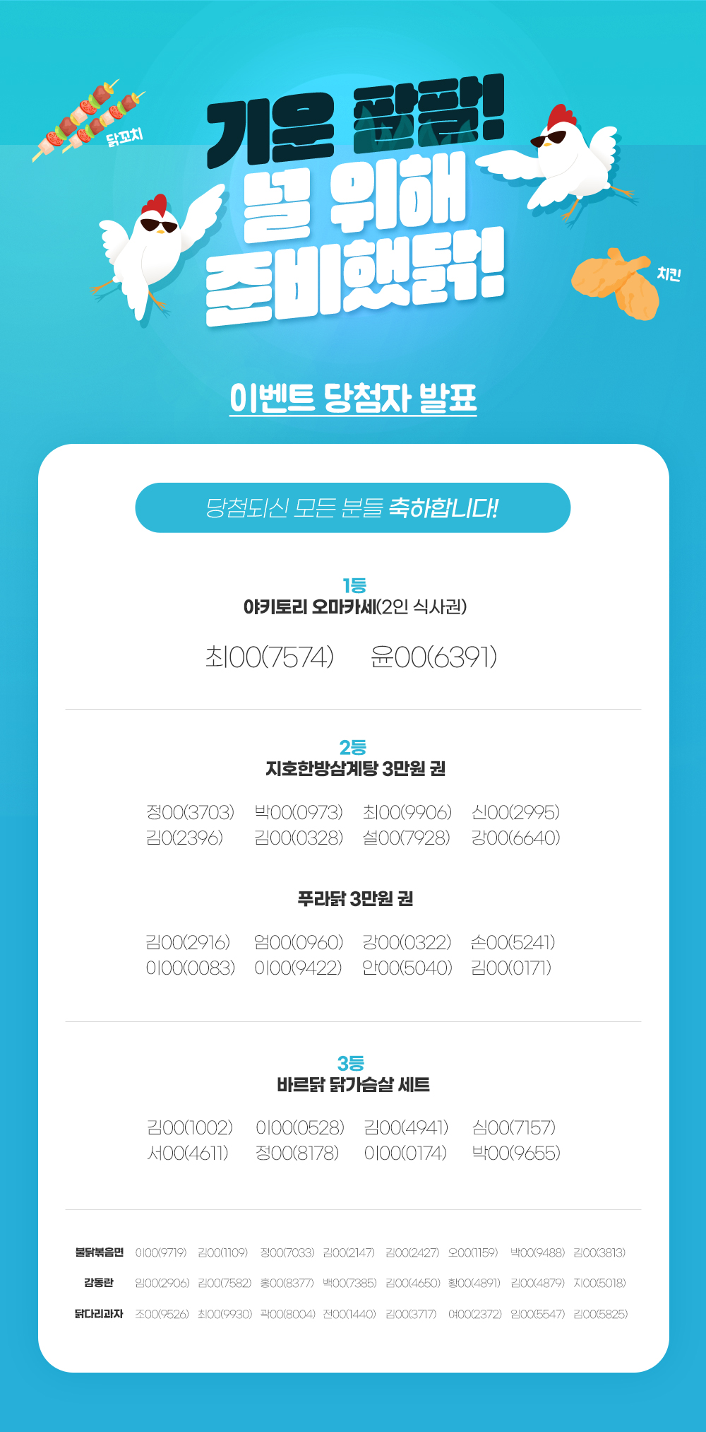 기운 팔팔! 널 위해 준비했닭! 이벤트 당첨자 발표