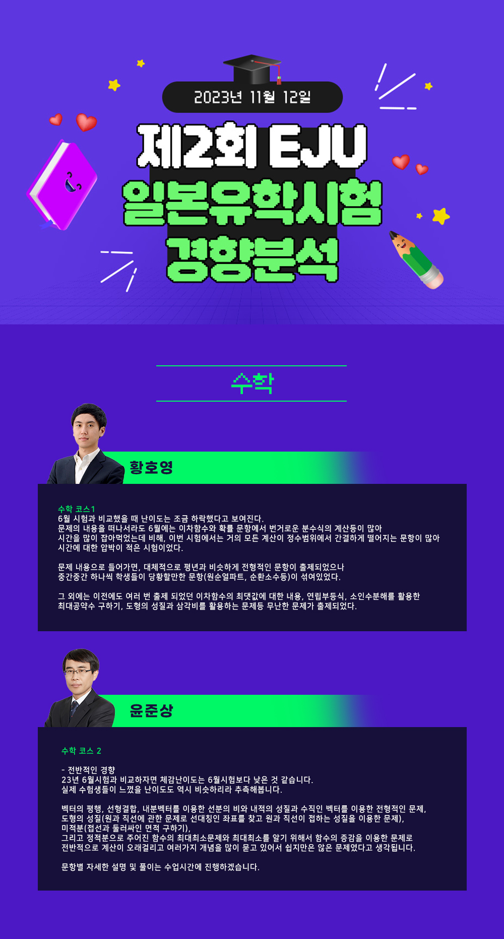 2023년 11월 12일 제2회 EJU 일본유학시험 경향분석 - 수학