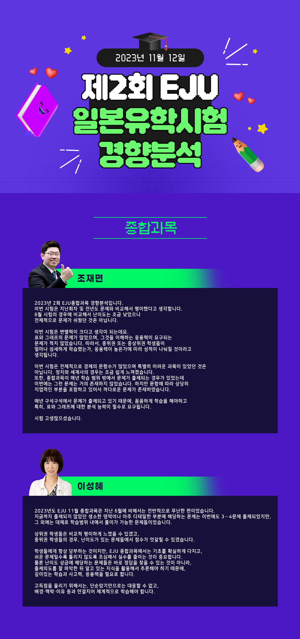 2023년 11월 12일 제2회 EJU 일본유학시험 경향분석 - 종합과목