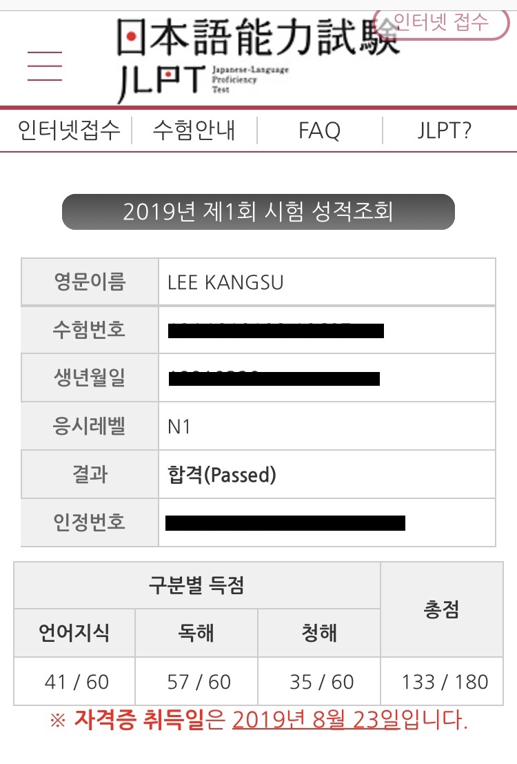 급하게 6개월만에 N1을 취득하는거라 중간중간에 과연 가능할까 불안하기도 했고... 지루하기도하고 힘들기도 했습니다. 하지만 열심히 하면 누구나 합격할 수 있다고 생각합니다. |