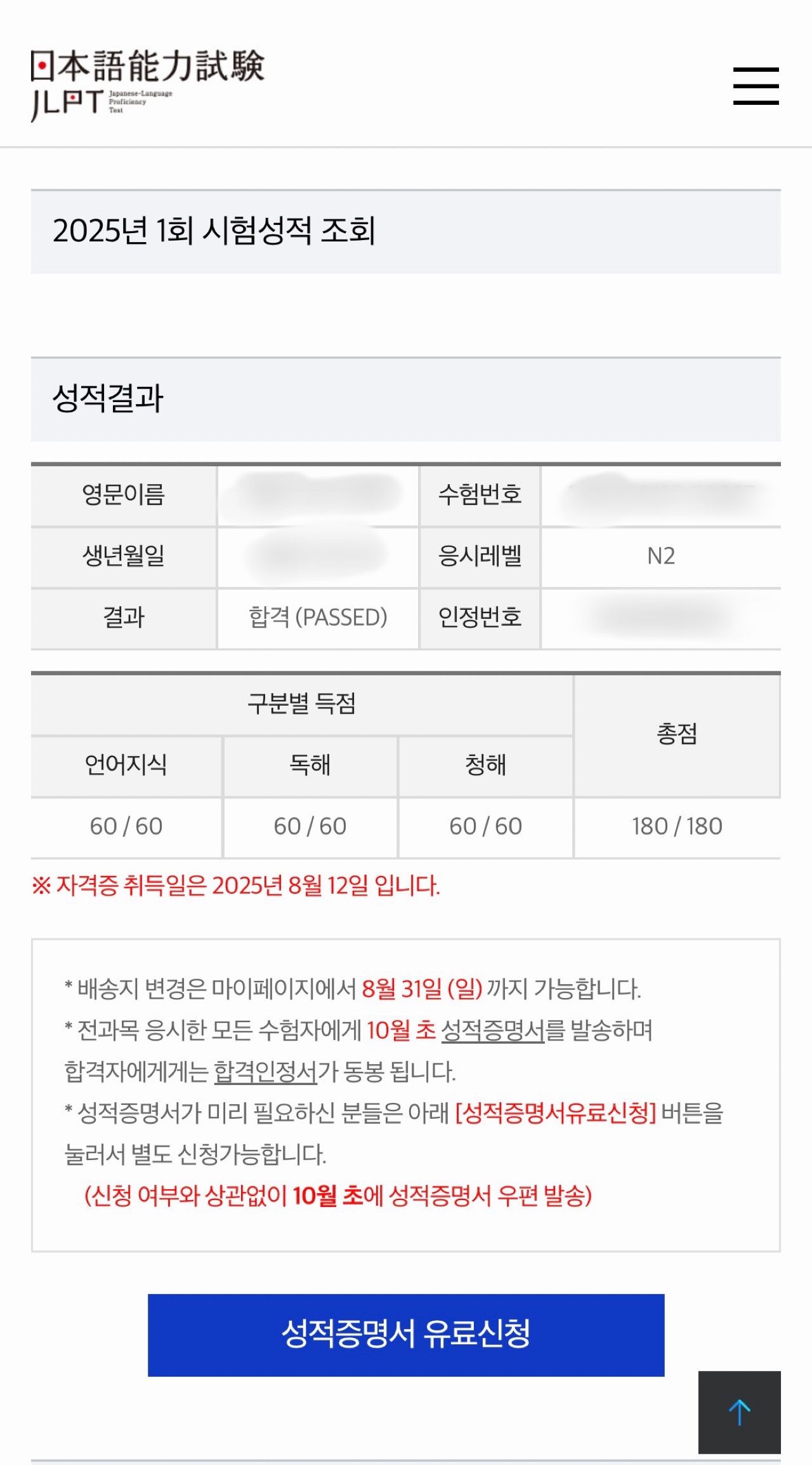 N2 만점 합격 후기...