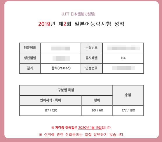 JLPT N4 합격했습니다!