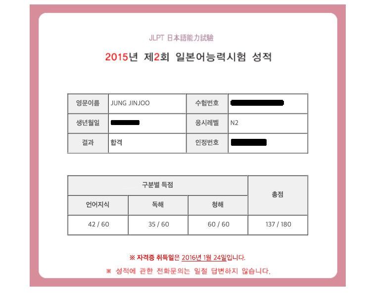 처음에야 걱정도 많이하고 제대로 수업도 못듣는 날도 있고 한자를 외우기도 힘들어지고 모의테스트에서 항상 생각했던것보다 점수가 잘 나오질 않아 시험에 떨어지는 악몽도 꾸고 이러다가 시험에 떨어지고 다시 공부를 해야하나 고민을 많이했는데 시험 전에 마지막으로 학원에서 모의시험을 보고 여태껏 봐온 시험점수들을 보여주며 쌤이 너무 걱정하지말라고 꼭 붙을 수 있을거라고 한마디를 듣곤 시험때 긴장을 풀고 열심히 배우던걸 기역하며 풀고나니 너무 시원하고 붙을것같은 느낌이 들더라고요.
