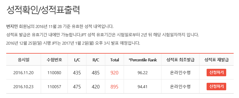 안녕하세요. 저는 지난 10월부터 11월까지 두달 간 김수빈 선생님의 JPT 800 지난 달에 수강 후기를 남기면서 다음에는 900점 돌파 후기를 쓰고 싶다고 했었는데, 현실이 되었네요. 이게 다 꿈이★이루어지는 수빈 선생님의 강의 덕분입니다!