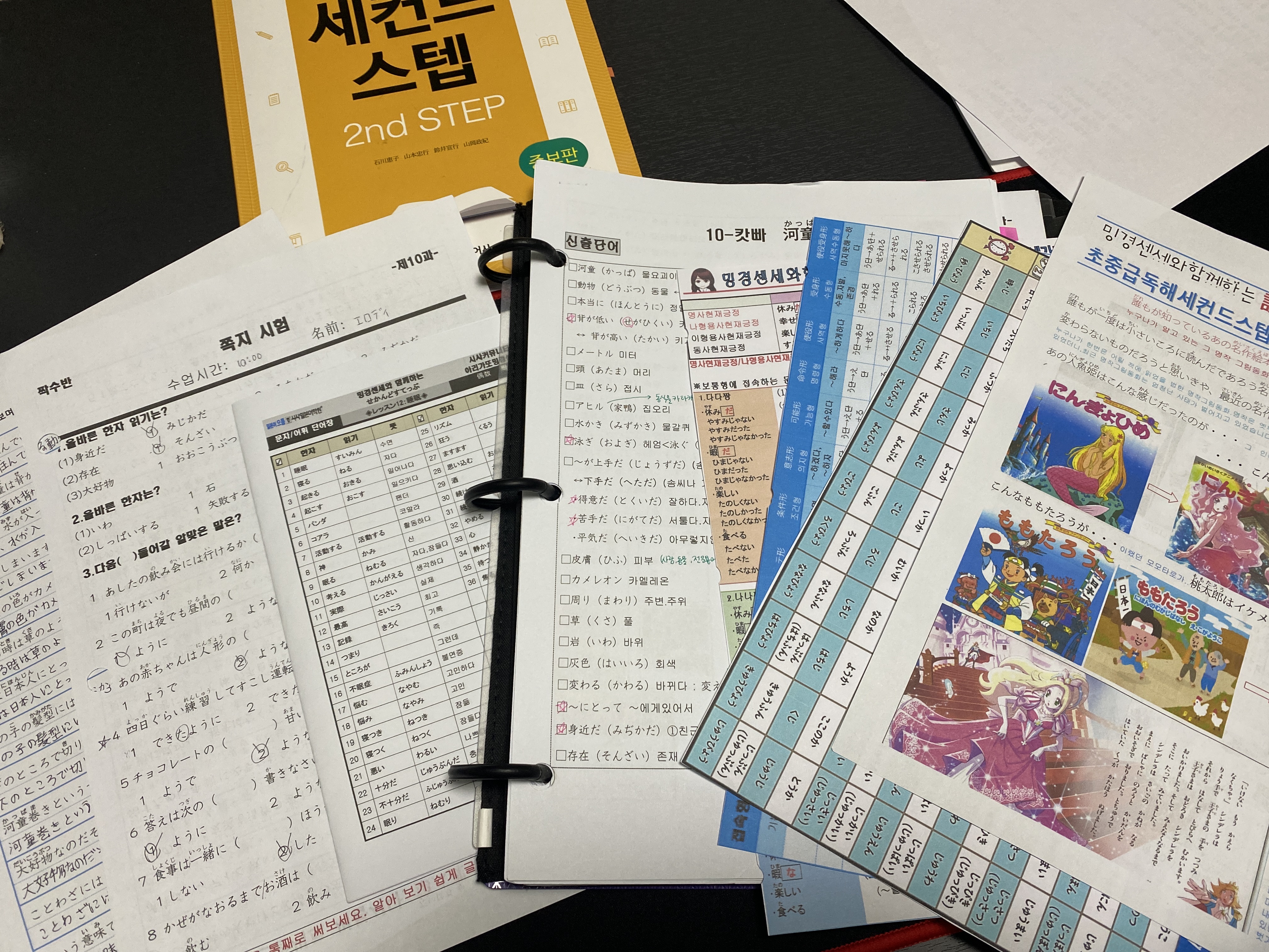 그렇게 정리 된 필기를 보고 선생님께서 내 주시는 간단한 예습, 복습 숙제만 열심히 하다보니 이해가 저절로 되었습니다. 수업 끝나고 때때로 재미난 내용으로 구성된 핸드아웃을 주시는데 그것을 통해 일본문화에 대해 공부할 수 있습니다.