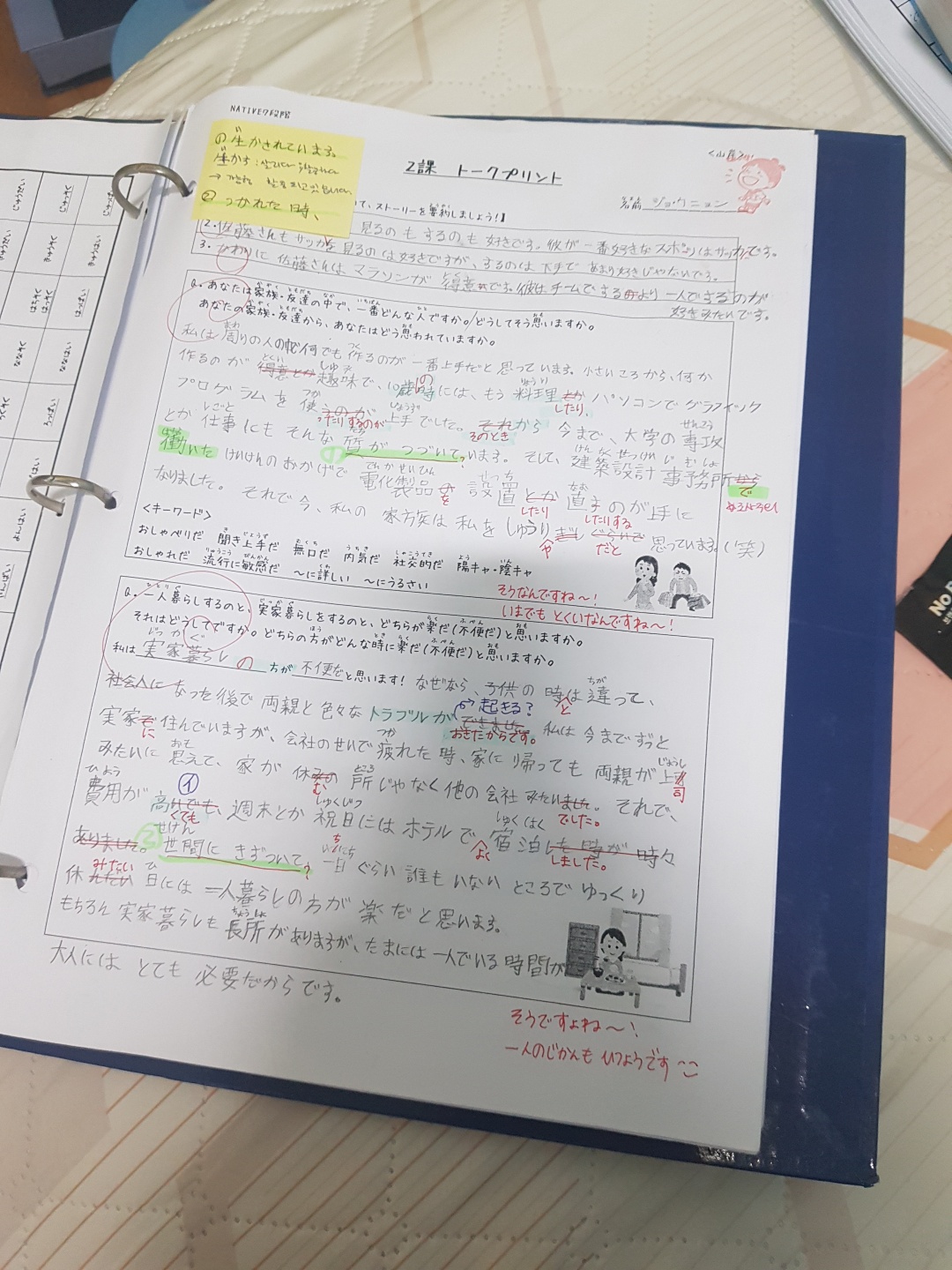 그리구 매~번~ 프리토킹주제를 작문해올때 정말 꼼꼼하게 (단순히 틀린것 뿐만아니라,좀더 자연스럽고 일본인이 쓸법한 말투로 바꿔주신다던지..)첨삭해주신것도 언제나 감동/// (스탬프가 카와이이~)
