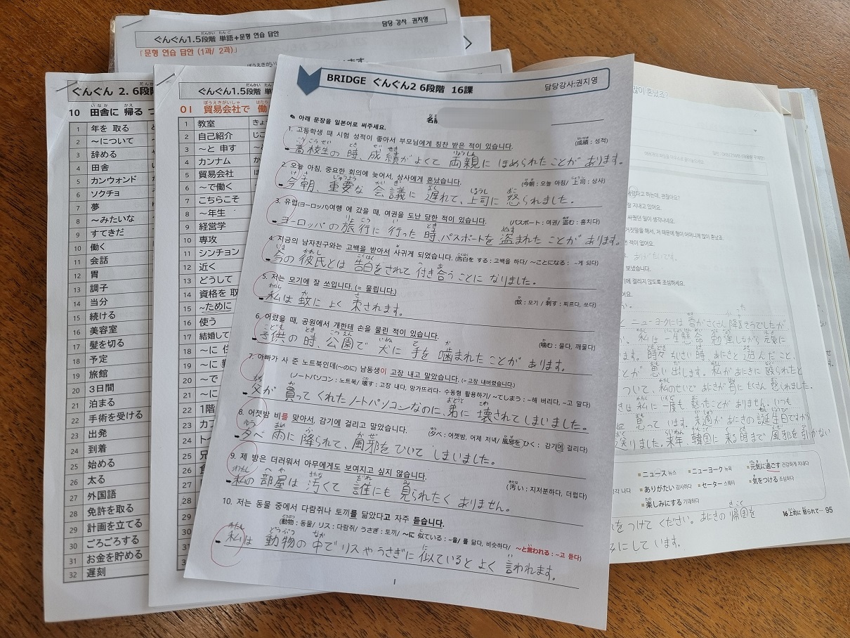 매 시간마다 숙제를 통해 작문하고, 한자를 쓰고 접할 수 있어서 좋았습니다. 교재의 문장을 소리내서 읽어보기도하고, 선생님께서 학생들에게 질문하고 답하고, 학생끼리 물어보고 답하기도 해서 말하기가 점점 익숙해질 수 있었습니다. 처음에는 어색하고 긴장됐지만 배웠던 문장이나 단어를 사용해서 더듬더듬 말해보는 것이 암기하는데 좋았고, 점점 자신감이 붙었습니다. 틀려도 웃으면서 정정해주시는 선생님 덕분에 더 그랬던 것 같습니다.